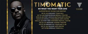 TIMOMATIC "LIVE" @ Mildura Arts Centre TIMOMATIC + Divine Our Destiny are coming to MILDURA in 2018 ! Multi-platinum selling artist Timomatic will be bringing he’s high-energy shows across Australia, as part of he’s “DO WHAT YOU WANT TOUR” in January and February 2018. The 9 special performances will include he’s biggest hits, including “Set It Off,” “ If Looks Could Kill,” “Parachute,” “Can you feel it” and he’s hottest new material. Timomatic has also invited the very talented dance/singing…
