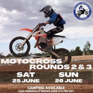 Swan Hill Moto Cross Weekender - Swan Hill VIC 2 day of Motocross Racing in the Murray river region next Weekend!! Camping Available ⛺️ Bring your camper and make a weekend of it!! Sign on from 7:30am to 8:30am Racing from 9am AMA Membership required Seniors $40 Juniors $25 Div 1 $15 Flaggie fee $20 / family $30 Extra bike $10 We need flaggies!! $70 per day, 16 years and over. Please contact the FB page. If you are a…